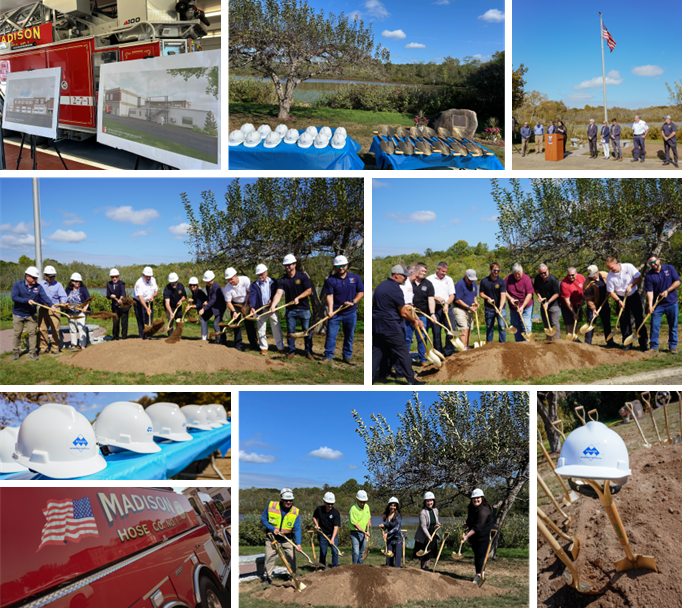 On Monday, September 25th, Pat Munger Construction Company, Inc., joined First Selectwoman Peggy Lyons, Congressman Joe Courtney, Senator Christine Cohen, Representative John-Michael Parker, Director of Emergency Services Sam DeBurra, and Chief Bobby Kyttle for the groundbreaking of the Madison Hose Company No. 1 Fire Department addition.